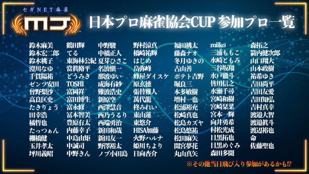 【セガNET麻雀MJ】第2回日本プロ麻雀協会CUP参加者一覧