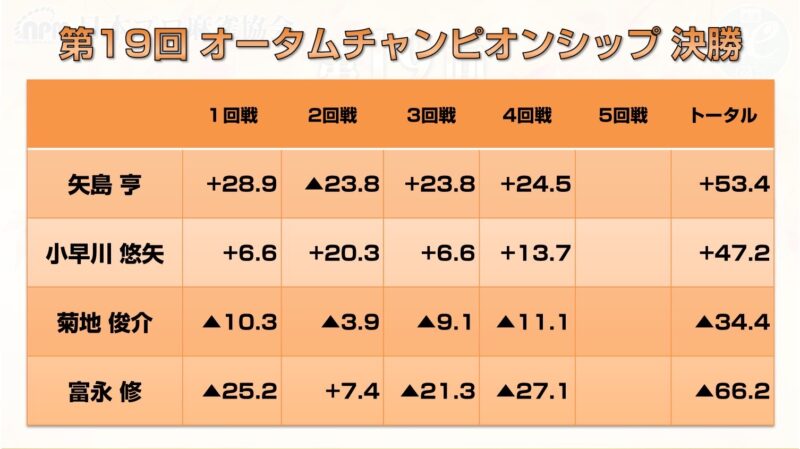 【担当記者:五十嵐毅】 3回戦を終えて、小早川と矢島は僅差。1着順差未満なので、ほぼ並びと言っていい。一方、ここまで3着3回の菊地と2着1回ラス2回の富…