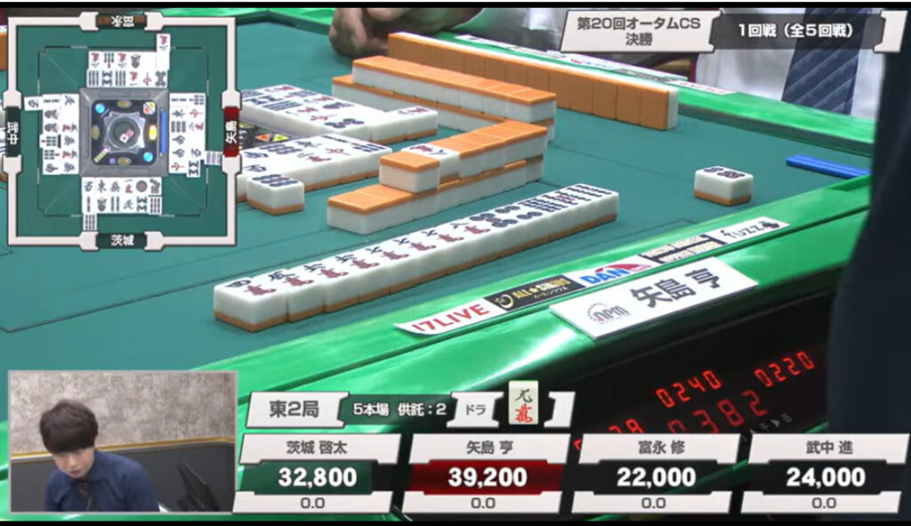 ディフェンディング制ではなく、前年度覇者もベスト16シードでしかないこの難関を、矢島は今年も当たり前のように勝ち進んで決勝の卓に座っている。もはや確率の外にいるといえる存在だ。