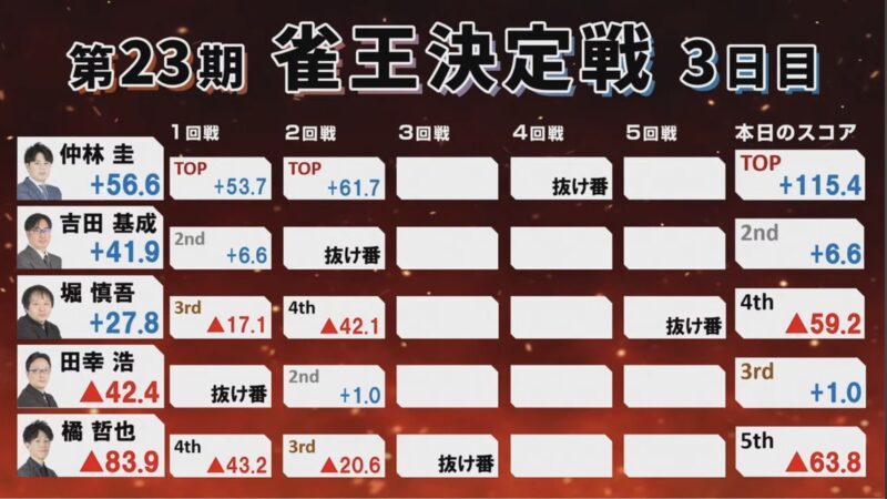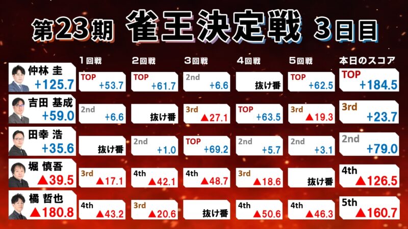 第23期雀王決定戦観戦記 3日目(13回戦)