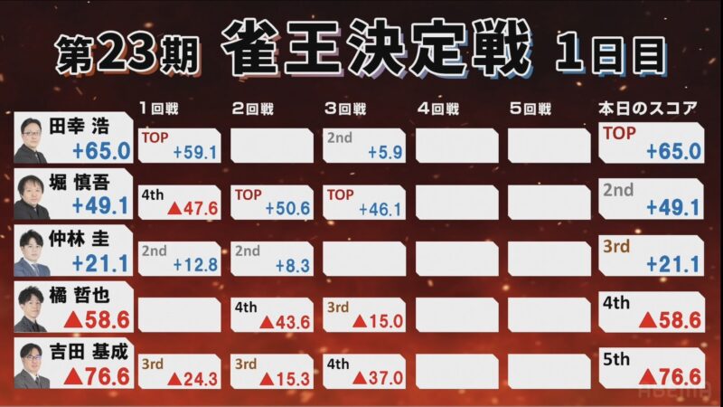 第23期雀王決定戦観戦記 1日目(4回戦)