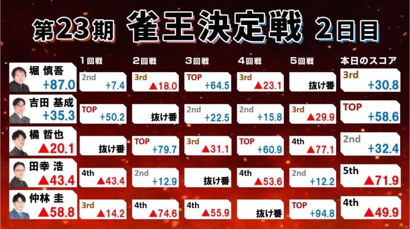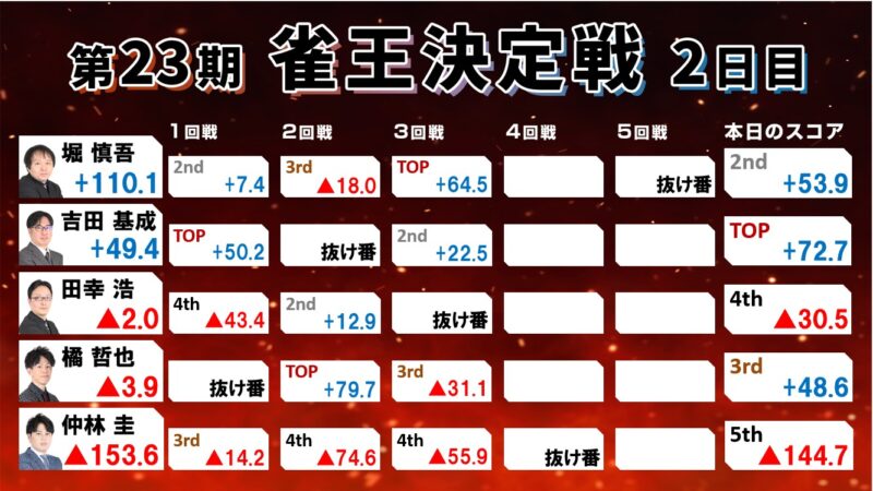 第23期雀王決定戦観戦記 2日目(9回戦)