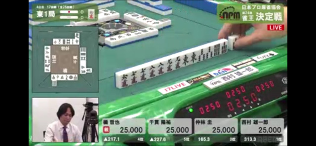 17回戦も最初にテンパイしたのは西村。