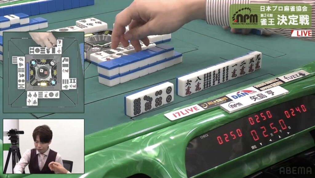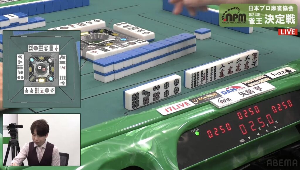 先制テンパイは矢島。引きでのテンパイは味気がない。