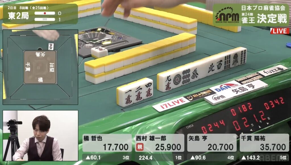 決定戦初日で首位に立っていた西村が、連勝スタートとなった。