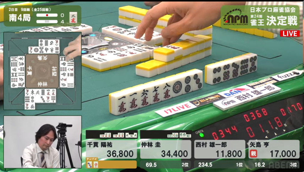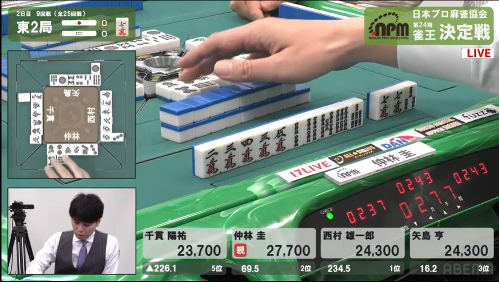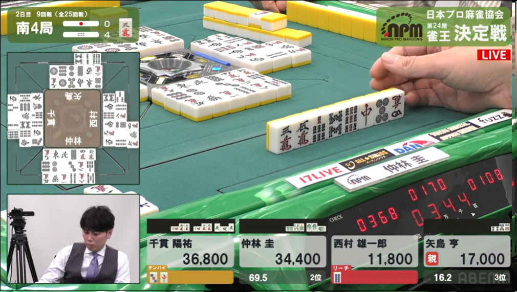 この後、仲林はリードを保ったままうまくゲームを回して南場へ。