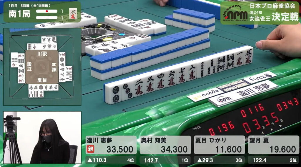 すぐにを引いて一通出来合いとなった逢川、もちろんリーチ。