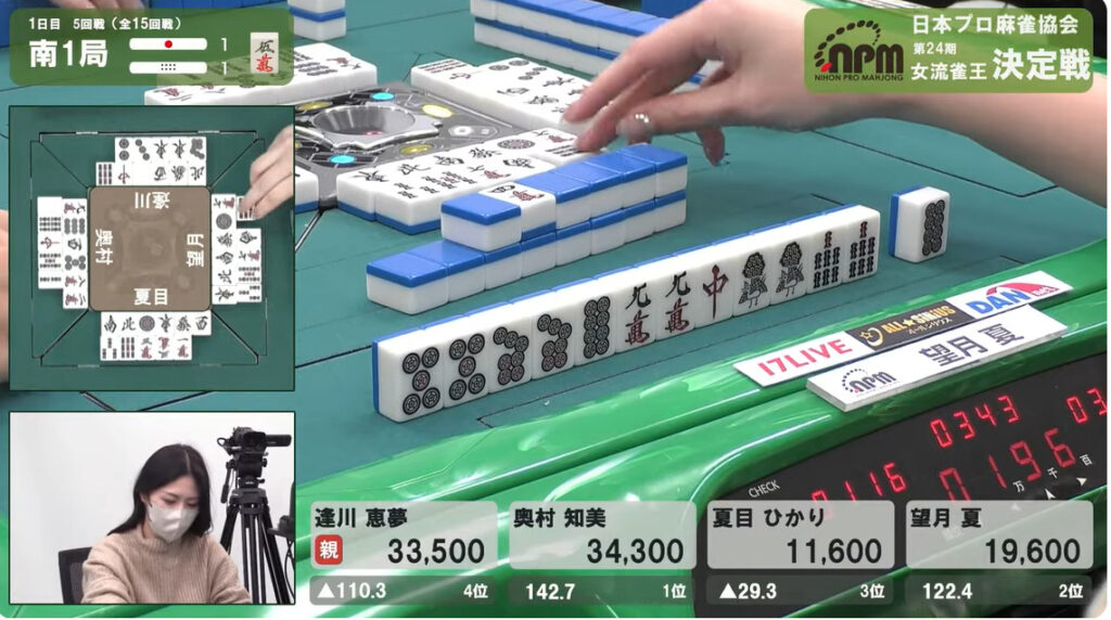 満貫ツモで夏目は2着順アップ。望月にしてみれば自身の3着落ちを防ぐ大ファインプレーだった。