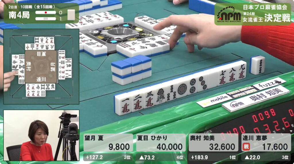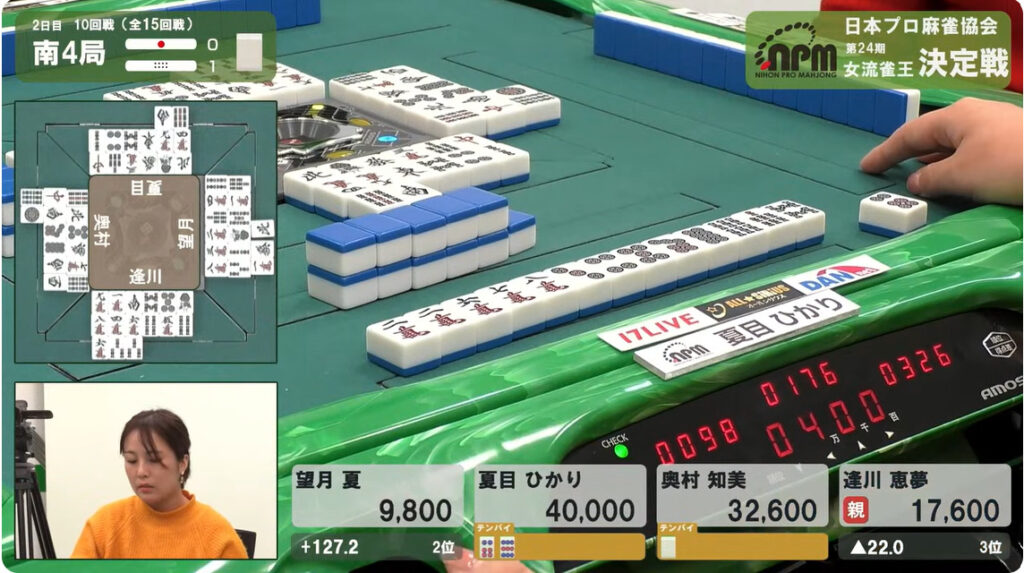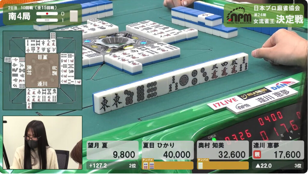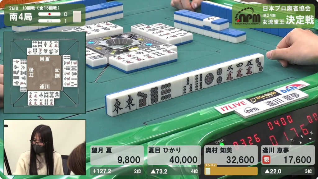 もしも逢川がで放銃していれば、奥村がトータル248.8ポイントとなって、ひとり大きく抜けた状況になるところだった。