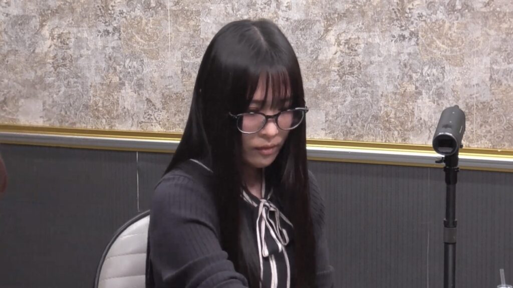 無念の4着になったのは、夏目ひかり。事前インタビューで「新人王になった時、このくらいのポイント差を逆転した経験はある」と語った。休憩時間に、残り4半荘の戦い方を整理して臨みたい。