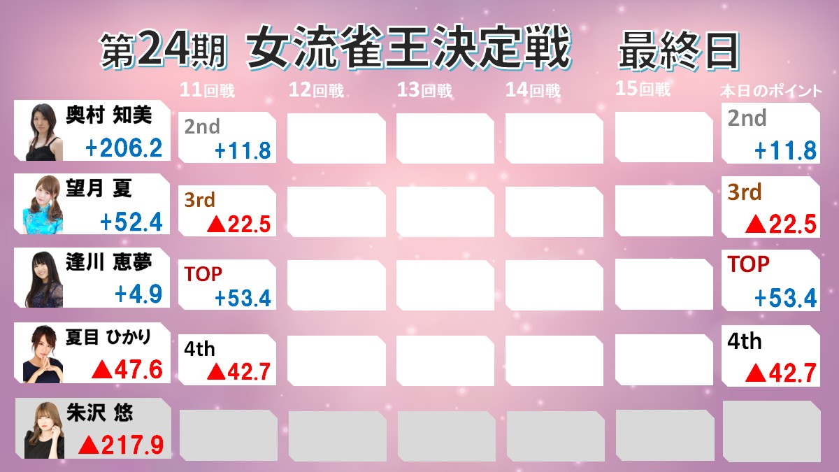 第24期女流雀王決定戦観戦記最終日(11回戦)