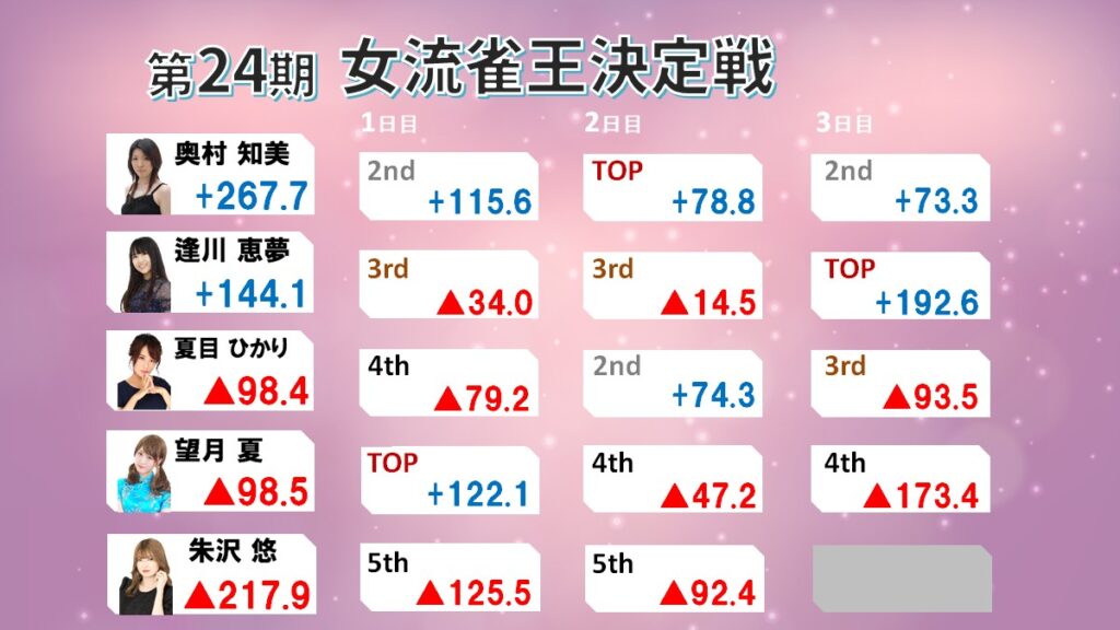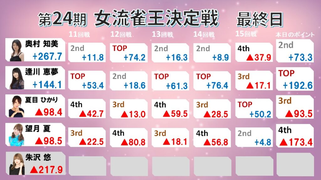 第24期女流雀王決定戦観戦記最終日(15回戦)