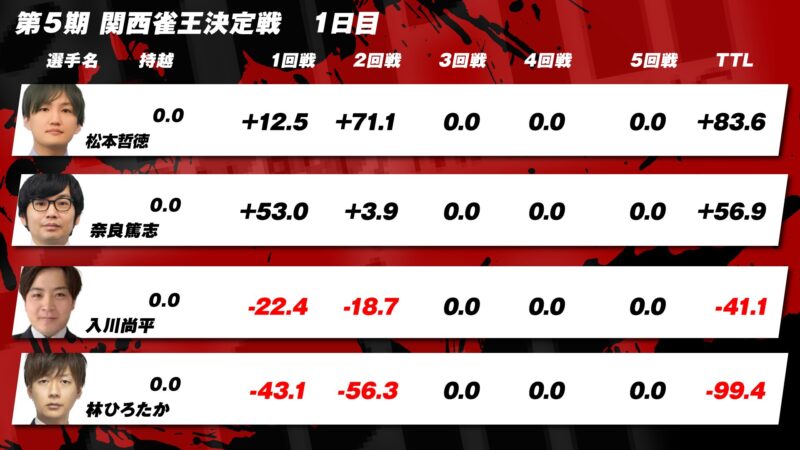 第5期関西雀王決定戦観戦記 1日目(1回戦)